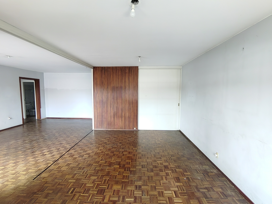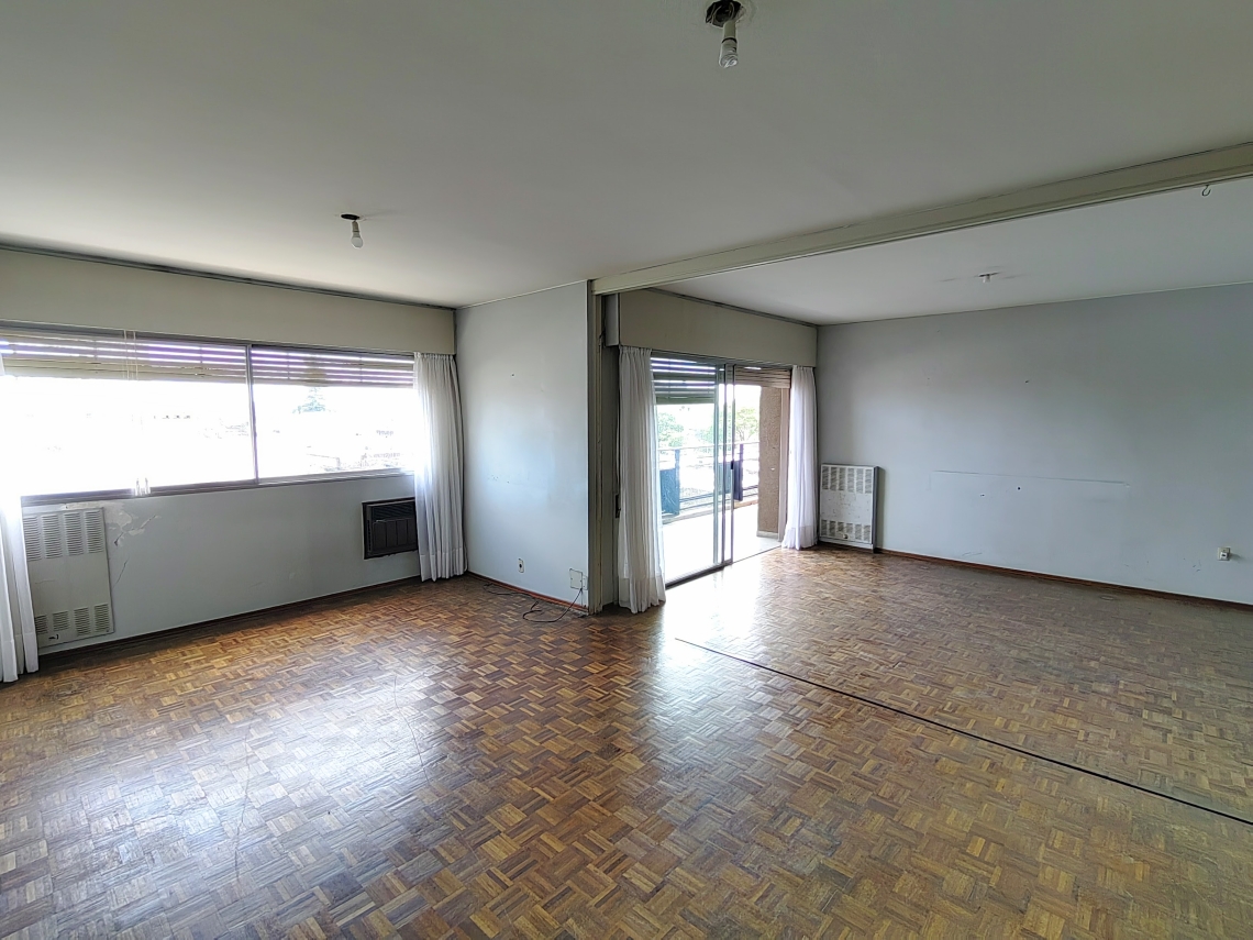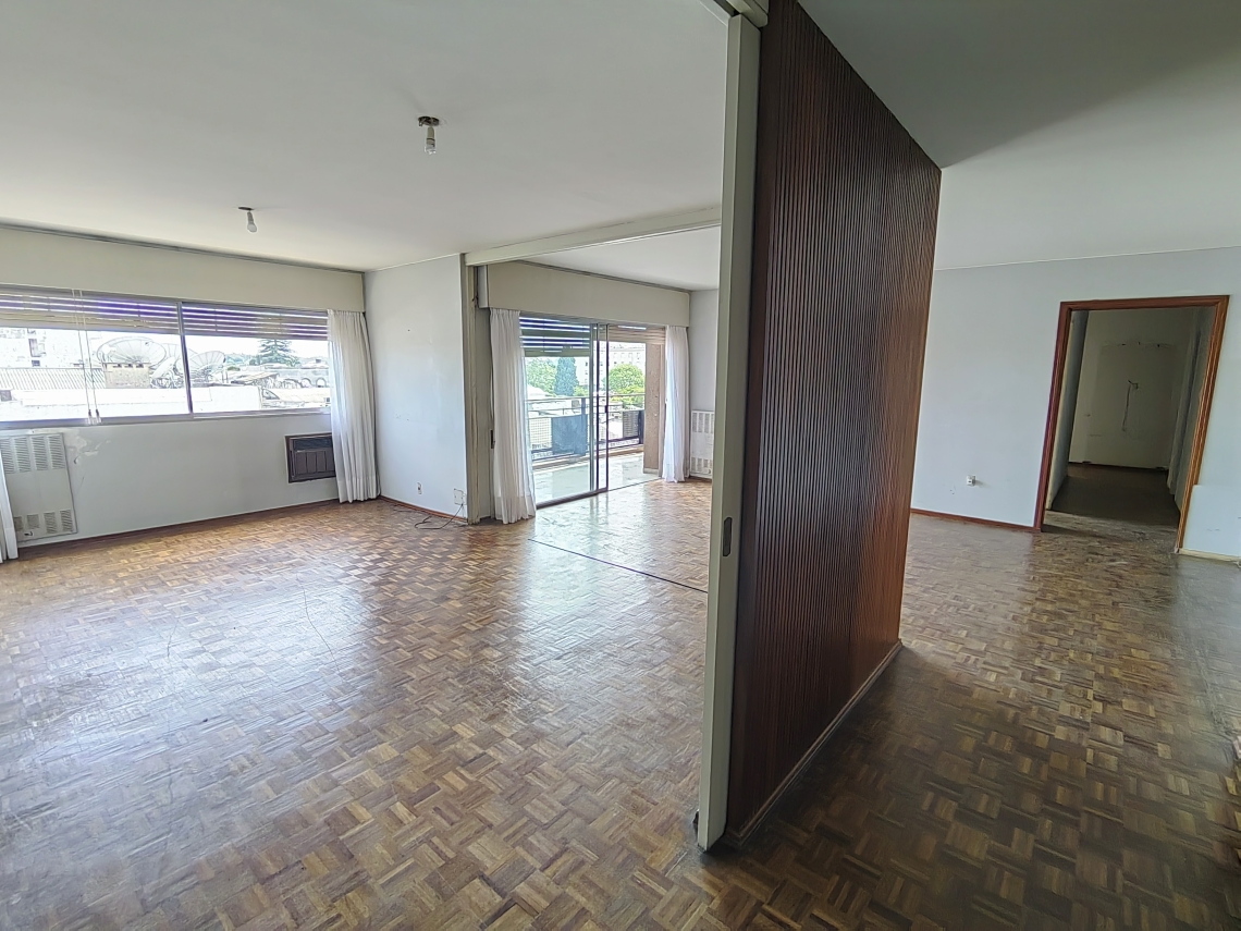 Este espacioso apartamento se distingue por sus ambientes luminosos y bien ventilados. Dispone de 4 dormitorios, uno de ellos con vestidor, todos con elegante piso de parquet. Un amplio living comedor se conecta con el balcón y ofrece vistas panorámicas del centro de la ciudad. Asimismo, cuenta con 2 baños completos recientemente renovados y un tercer baño de servicio.
