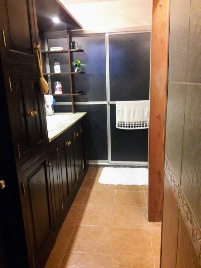 En su planta alta tiene 3 dormitorios y un baño grande y más arriba una boardilla. El fondo con jardines es muy bonito y soleado y cuenta además con una barbacoa techada pegada a la casa, entrada lateral, garaje al frente y una gran piscina estructural.