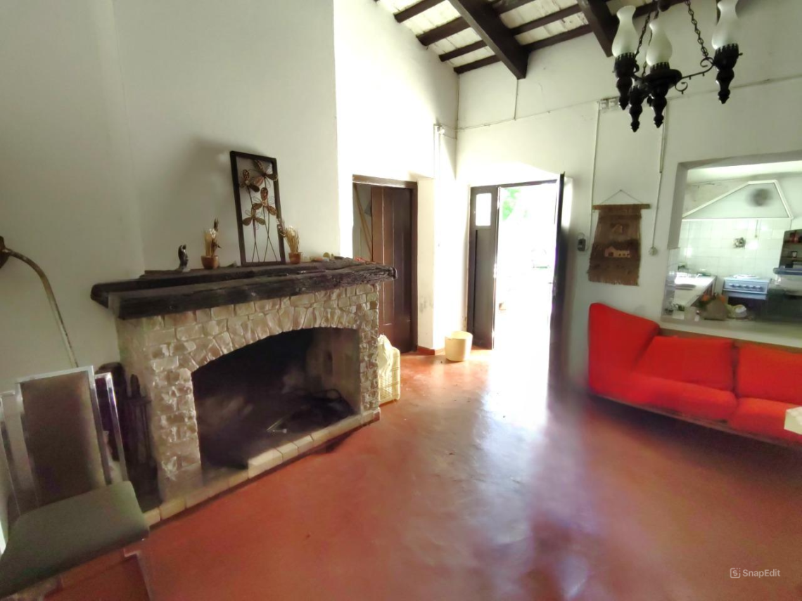 - Amplio living comedor con estufa a leña.